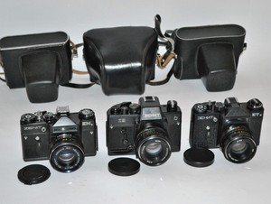 Set Of Three Black Ussr Slr Zenit Cameras Zenit Em Zenit Et